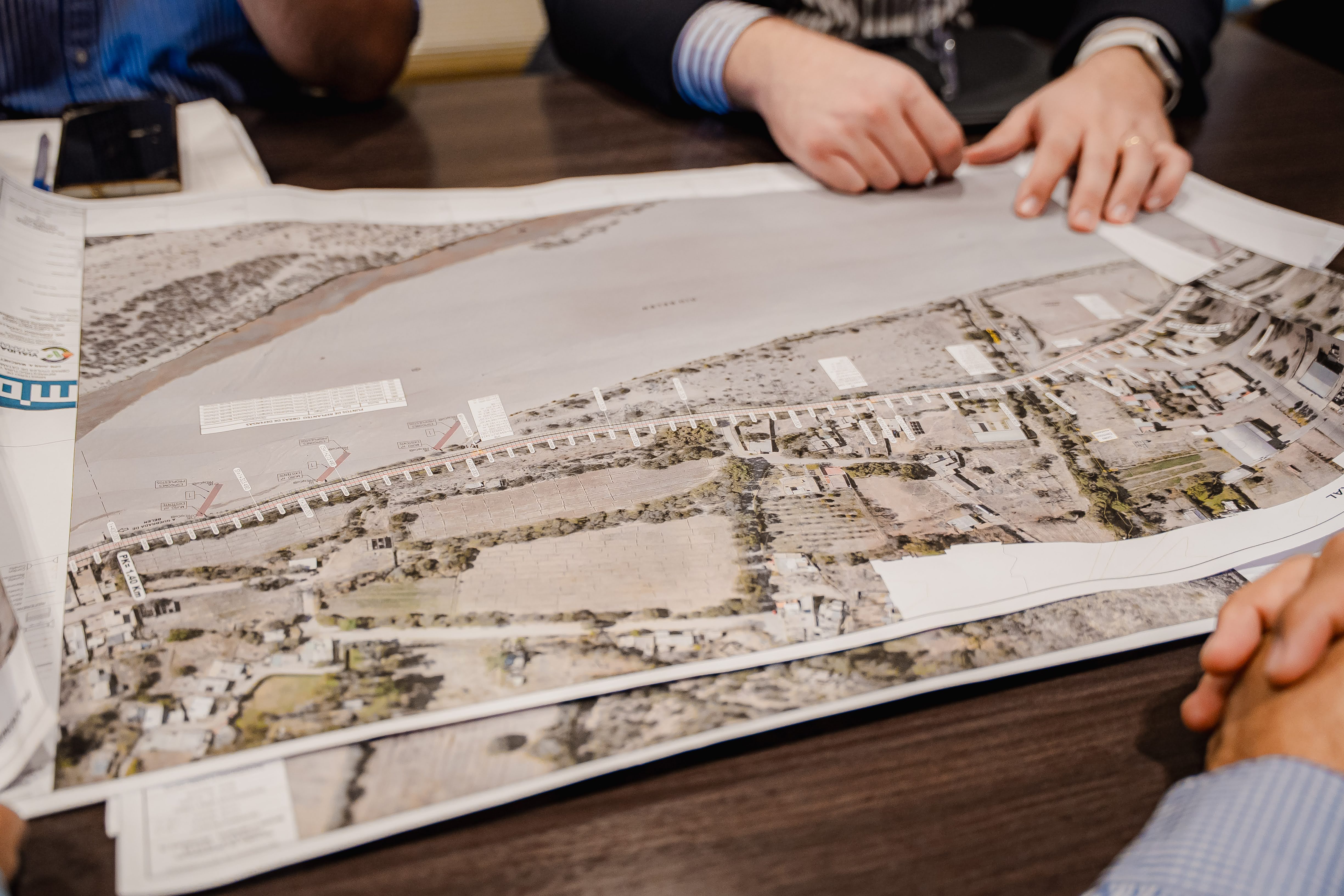 El gobernador Raúl Jalil, junto al ministro de Hacienda y Obras Públicas, Juan Marchetti, y el vicegobernador Rubén Dusso, mantuvo una reunión con el intendente de Belén, Cristian Yapura, y el equipo técnico de Vialidad Provincial para avanzar en la planificación de la obra básica y pavimentación del paso externo de la ciudad de Belén.