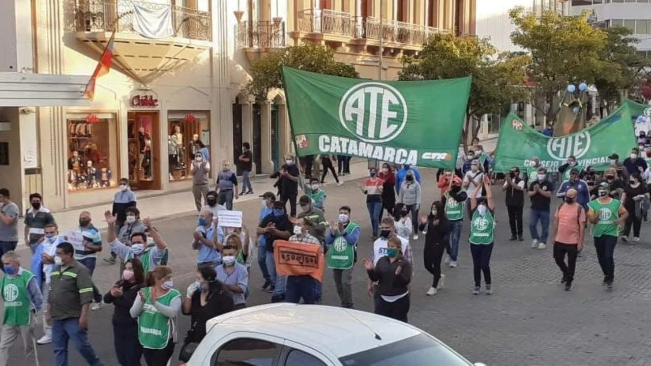 Una columna del SOEM partió desde la plaza 25 de Agosto, atravesó la plaza principal y avanzó por calle Salta en contramano, rumbo a la sede gremial ubicada a metros del Palacio Municipal.