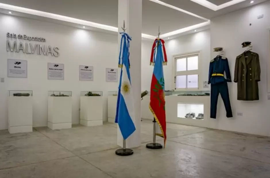 La sala central cuenta con una exposición permanente de trajes, calzado y elementos que fueron utilizados por ex combatientes, también cuenta con un paracaídas, fotografías y cartas del año 1982.