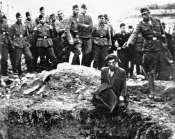 En 1941, una fotografía tomada en Ucrania capturó un instante que llegó a simbolizar el “Holocausto de las balas”: un nazi apunta su arma a la cabeza de un hombre que observa la cámara con una expresión desafiante, mientras otros soldados alemanes y un civil miran la escena sin manifestar conmoción. A sus pies, una fosa común abierta.
